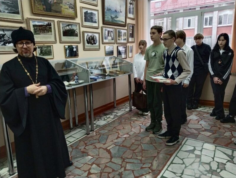 По окончании чтений, всех участников напоили чаем и пригласили в школьный музей СОШ №34, посвященный тверским защитникам Севастополя в годы войны, где для ребят из других школ создатель музея священник Роман Манилов провел увлекательную экскурсию по его экспозиции.